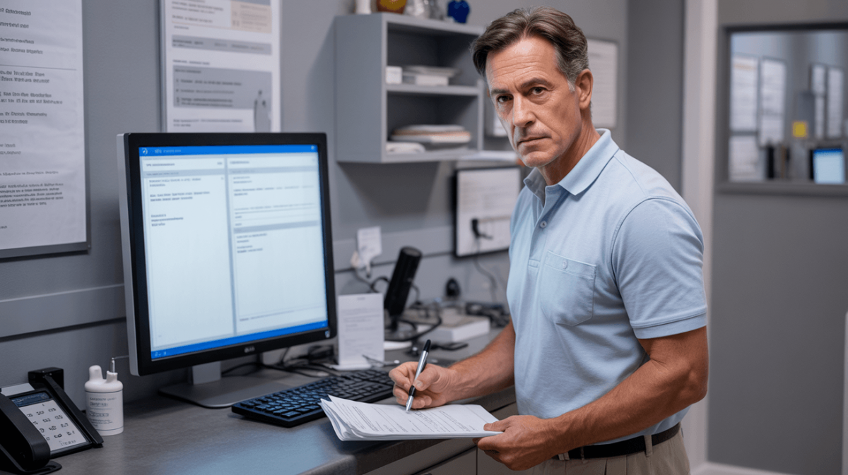 Herr Schneider, Geschäftsführer eines kleinen Unternehmens, sitzt am Schreibtisch und prüft ein Angebot. Der Text wirkt professionell, sauber formuliert, überzeugend. Erst später stellt sich heraus: Die Zahlen stimmen nicht. Der Text wurde mit KI erstellt, schnell, effizient, aber ohne finale Prüfung.